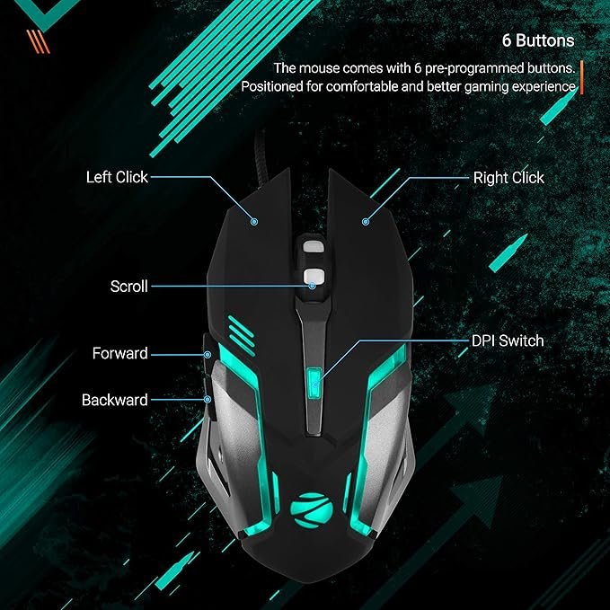 | Generic Name | Zebronics-Transformer-M with a High-PerformanceGold-Plated USB Mouse: 6 Buttons, Multi-Color LED Lights,High-Resolution Sensor with max 3600 DPI, and DPI Switch(Bla |